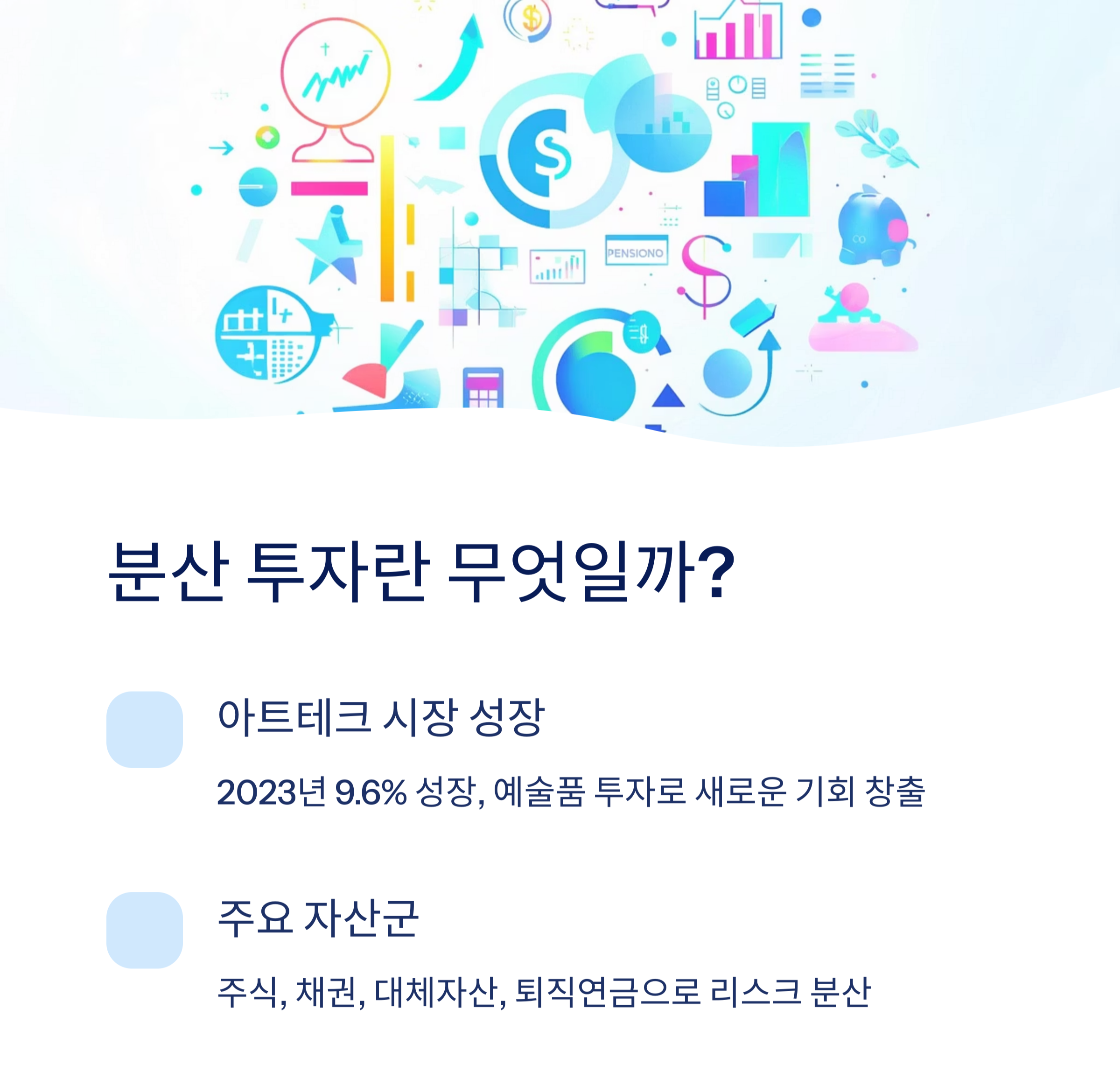 아트테크, 주식, ETF, 부동산, 암호화폐, 퇴직연금 운용 등 다양한 자산군을 활용한 분산 투자는 이제 선택이 아니라 필수가 되고 있습니다. 각각의 자산군은 고유의 리스크와 수익 특성을 가지고 있으므로, 자신의 투자 성향과 생애주기에 맞춘 포트폴리오 구성이 중요합니다.